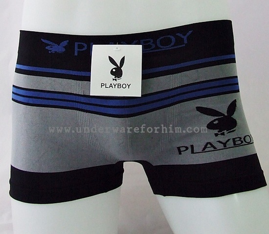 กางเกงในชาย PLAYBOY Boxer Brief : ลายน้ำเงินดำ สีเทา