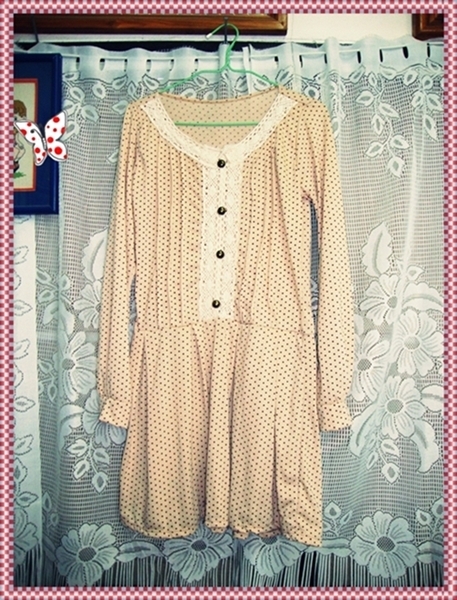 เดรสสีน้ำตาล ลายจุดสีน้ำตาล แขนยาว