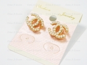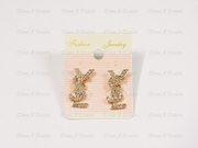 ต่างหูแป้น YSL สีดำควันบุหรี่ฝังคริสตัลสีควันบุหรี่