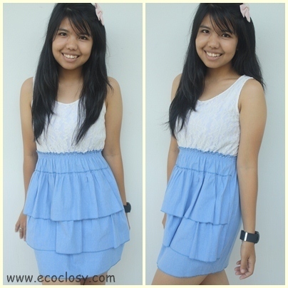 ชุดเดรสเสื้อกล้ามด้านบนเป็นลายลูกไม้เนื้อผ้านุ่ม ส่วนกระโปรงจะเป็นชั้นๆ