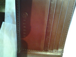 ขายกระเป๋าสตางค์มือสอง Ragazze ของแท้แน่นอน สีน้ำตาลเข้ม แบบพับครึ่ง ด้านในมีช่องใส่บัตร 4 ช่อง + ช่องใส่เหรียญ + ช่องใส่แบงก์ 2 ช่อง ยี่ห้อ Ragazze การันตีคุณภาพหนังในตัว ซื้อมาจาก shop ราคา 1,650