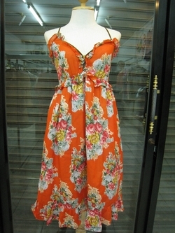 ส่งต่อเดรสสายเดี่ยวสีส้มลายดอกไม้ (USED)