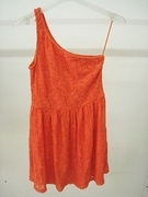 ส่งต่อเดรสไหล่เฉียงลูกไม้สีส้ม แบรนด์ Stradivarius (USED)