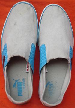 PUMA ทรงสวมผ้าใบครีมแถบฟ้าเบอร์ 42