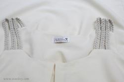 เดรสกระโปรงสีครีม สายเป็นเชือกสามเส้น เนื้อผ้าชีฟองนุ่ม ยาวประมาณ 30.5 นิ้ว ราคา 220 บาท
