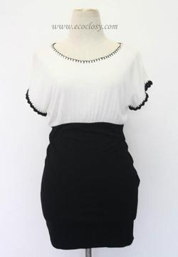 เดรสแฟชั่น สีขาว-ดำ แบรนด์ Ally ความยาวประมาณ 32 นิ้ว ราคาลดเหลือ 200 บาท