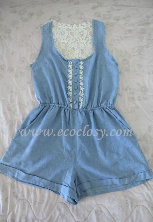 เดรสกางเกงขาสั้นสีฟ้าแขนกุด ด้านหลังเป็นลูกไม้ เอวจั๊ม ความยาว 28 นิ้ว ราคาพิเศษ 180 บาท