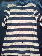 เสื้อยืดลายขวาง สีน้ำตาลอ่อน-ดำ เเขนสามส่วนตัวยาว ด้านหังเป็นกระดุม ผ้านิ่มมาก แบบเก๋ค่ะ ใส่สบายค่ะจะใส่เป็นเดรสสั้นก็เก๋ดีน่ะค่ะ