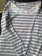 ขายค่ะ เสื้อยืดลายขวางสีเทา-ขาว เเขนยาว ค่ะ ตรงคอเสื้อจะเป็นลูกไม้สามารถใส่แบบเปิดไหล่ได้ค่ะ ด้านข้างมีกระเป๋าด้วยน่ะค่ะ