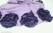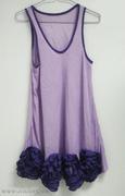 เดรสกระโปรงแขนกุดสีม่วง ช่วงปลายกระโปรงจะมีดอกไม้สีม่วงประดับอยู่ ยาวประมาณ 32 นิ้ว ราคา 180 บาท