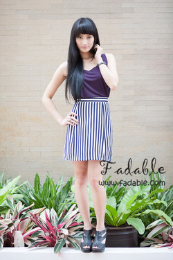 กระโปรงทรงเอ ลายริ้วสีขาวกลม งานเย็บเองเต็มที่กับคุณภาพเนื้อผ้า