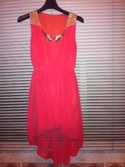 Dress ใหม่ มีเข็มกลัดปีกนก สีทอง ข้างหน้าสั้น ข้างหลังยาว