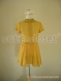 จัมพ์สูทหรือชุดหมีผ้าชีฟองตกแต่งลูกไม้สีเหลืองมัสตาร์ด style LANDMEE