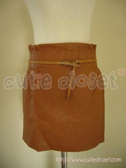 กระโปรงหนังทรงขนมจีบสีน้ำตาล style ZARA