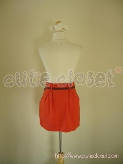 SALE ลดราคา กระโปรงผ้าเกาหลีทรงขนมจีบสีแดงอมส้ม แถมเข็มขัด