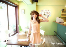 ชุดเดรสสั้นเกาหลี สีครีมส้ม