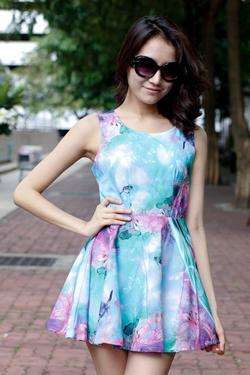 ขายเสื้อผ้าแฟชั่น ชุดเดรส จั๊มสูท พร้อมส่งไม่ต้องรอพรีออเดอร์ บริการส่งไปรษณีย์ เดรสลายดอกไม้และผีเสื้อ Color : ฟ้า ส้ม ชมพู Price :390