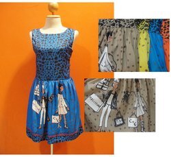 เดรสMoshino ลายการ์ตูนน่ารัก Color : น้ำตาล เหลือง น้ำเงิน ส้ม Free size อก36 เอว 30 ยาว 34" Price : 390