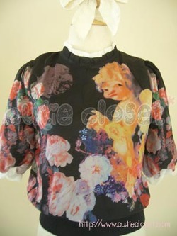 เสื้อผ้าพิมพ์ลายเป็นอีกไอเท็มที่กำลังอินสุดๆ ตอนนี้ค่ะ ตัวนี้ทำจากผ้าชีฟองพิมพ์ลายเด็กน่ารักๆ คอเสื้อเป็นแบบปิดนะคะมีกระดุมด้านหลัง แขนยาวประมาณข้อศอก จัมพ์และกุ๊นด้วยขอบสีขาว ใส่กับกางเกงเอวสูงได้ลุคคุณนายมากๆ ค่ะ อก ยืดได้ถึง 36" ยาว 20" http://www.cutiecloset.com/Products/productdetails.asp?category_id=1&product_id=200812295