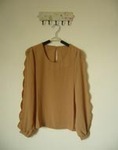 เสื้อคอกลมแขน scallop สีน้ำตาล