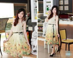 ขาย เดรสชีฟอง maxi dress ลายดอก อัดพลีทช่วงอก
