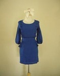 เดรสคุณนายผ้าจอร์เจียตกแต่งระบายสีน้ำเงิน
