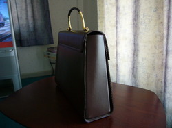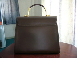 กระเป๋าถือยี่ห้อ Kark Lagerfeld สีน้ำตาลเข้ม มีสายสำหรับสะพายได้ด้วย ภายในมีช่องซิป 1 ช่อง ด้านหน้ามีช่อง 1 ช่อง หูกระเป๋าเป็นสีบรอนซ์ ฝากระเป๋ามีโลโก้ของยี่ห้อ เขียนว่า KL สีบรอนซ์ เปิด ปิด ด้วยกระดุมแมกเนติก สีน้ำตาลสวยงามมากค่ะ ใต้กระเป๋ามีหมุดโลหะเคลือบสีบรอนซ์สีด้าน ทำให้เวลาวางกระเป๋าไม่เสียรูป