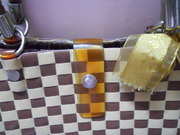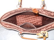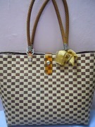ขายกระเป๋าสานพลาสติก มือสอง ลายตารางสีน้ำตาล ใบใหญ่ บุผ้าด้านใน