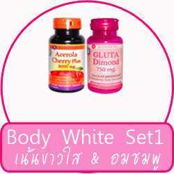 เข้าชมสินค้ามากมาย/สั่งซื้อสินค้า : http://www.beautyconner.com สอบถามสินค้า/สั่งซื้อสินค้า : Tel.087-9503168 ติดต่อเอ BODY WHITE SET-1 บอดี้ไวท์ เซ็ต 1( 2 ชิ้น) 1.KATERICHY GLUTA DIMOND 750 Mg. 2.KATERICHY ACEROLA CHERRY3,000 Mg. (สินค้านำเข้าจากฟินแลนด์) เลขที่ทะเบียน อย. 1.เลขที่ 11-1-06353-1-0058 2.เลขที่ 11-1-06353-1-0045 โปรโมชั่นลดสุด!!สำหรับสาวกความขาว คู่ขวัญแห่งความขาวที่นำเข้าจากประเทศฟินแลนด์ สินค้าผ่านการรับรองจาก อย.(ประเทศไทย) คุณจึงรับประทานได้อย่างปลอดภัย เลิกทานแล้วไม่กลับมาดำเหมือนเดิม เพราะไม่ผสมสารที่กดเม็ดสีผิว ไม่ผสมแป้ง ไม่ทำให้อ้วน ทานคู่กันจะช่วยปรับผิวพรรณของคุณให้ขาวสว่างใสขึ้น ดูมีออร่าขึ้น ไม่โทรม ในระยะเวลาไม่นาน ช่วยลดรอยดำจากสิว ฝ้า กระ จุดด่างดำตามผิวกายและหลัง ข้อศอก หัวเข่าที่หยาบกร้าน สีผิวไม่เสมอกัน สินค้าคุณภาพดีแบบนี้ ในราคาที่ถูกแบบนี้ ขอแนะนำสำหรับคุณสาวๆที่ชอบความขาวใสต้องลอง อ่านรายละเอียดสินค้า..คลิ๊ก!! 1.KATERICHY GLUTA DIMOND 750 Mg. 2.KATERICHY ACEROLA CHERRY3,000 Mg. ปริมาณสินค้า บรรจุ(กระปุกละ) 30 เม็ด