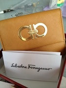 กระเป๋าตัง Salvatore Ferragamo ของแท้100% สีน้ำตาลอ่อน ใบสั้นเปิดสองด้าน ต้องการขายเพราะไม่ได้ใช้เลย