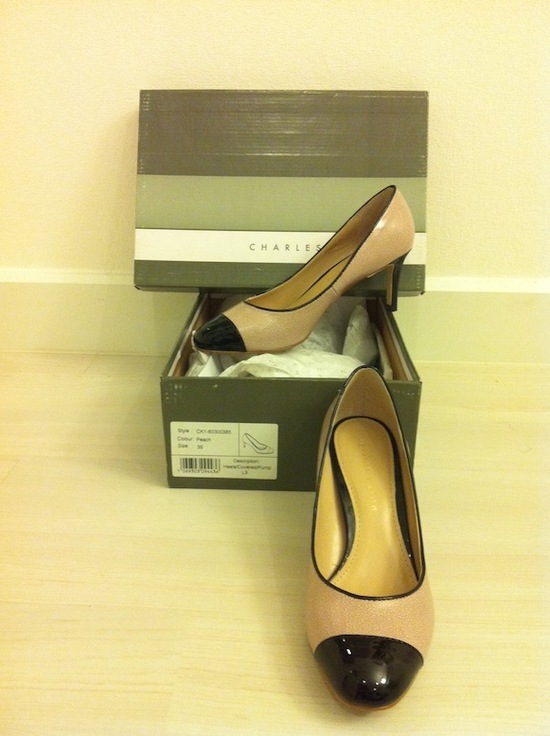 รองเท้า Charles & Keith สี Peach (ออกชมพูอ่อน) มีลายดำอ่อนๆ หัวดำ Size 35 สูงประมาณ 2 นิ้ว สภาพใหม่มาก สติกเกอร์และป้ายราคายังติดอยู่ ใส่ไม่ได้เพราะเล็กไปค่ะ