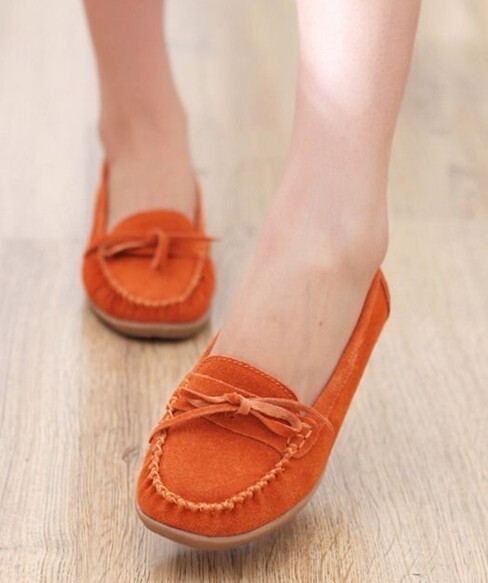 รองเท้าหนังแท้แฟชั่นเกาหลี นำเข้า แบบส้นเตี้ย สีส้ม ไซส์35 - พร้อมส่งHS123-9