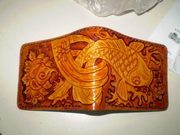 1. ตอกลายปลาคราฟ ขนาด ขนาดกระเป๋า ยาว 8นิ้ว กว้าง 3.5 นิ้ว ขาย 900 บาท ครับ 2. ตอกลายมังกร หนังวัวฟอกฟาดตอกลายมังกร ขนาด 8*8 นิ้ว ช่องใส่การ์ด 12 ช่อง ใส่บัตร 3 ช่อง ใส่เศษตังค์ 1 ช่อง ขาย 1900 บาท มีกระเป๋าอีกหลายแบบรองเข้าไปดูได้ครับ ทั้งหมดเป็นงาน handmade http://www.facebook.com/media/set/?set=a.109686432501770.13258.100003812423216&type=3#!/profile.php?id=100003812423216 โทร 081-5808731