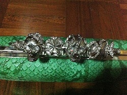 ขายกระเป๋าคลัชท์สีเขียวหนังงู ที่ถือเป็นคล้ายๆเเหวนหัวกระโหลกมีเพชร พร้อมสายยาวเก็บได้ สภาพ 99% มือสอง หนังเเท้ ราคา 1,500 บาท ราคานี้รวมส่ง EMS ในประเทศเเล้ว