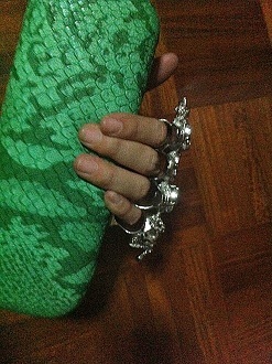 ขายกระเป๋าคลัชท์ ทรงหัวกระโหลก สีเขียวหนังงู สภาพ 99% มือสอง