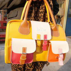 กระเป๋าแฟชั่น สไตล์อินเทรนด์แบบถือสีหวานน่ารัก ทำด้วยหนังสังเคราะห์แฟชั่นใหม่แต่งด้วยหนังหลากสีอินเทรนด์ จะถือไปเที่ยวหรือไปทำงานก็สวยมีเสน่ห์คล่องตัว จะใส่เป็นกระเป๋าถือ กระเป๋าทำงาน แบบใหม่ สวย ควรคู่กับพรีออเดอร์เสื้อสูทแฟชั่นสวยไว้ใส่พร้อมกันเป็นคอลเลกชั่นฮิตชนะเลิศ รหัสสินค้า : BLB7989 ขนาด : 38*25*14 ซม. วัสดุ : PU สี : ดำ/เหลือง/ฟ้า/ส้ม/โรส