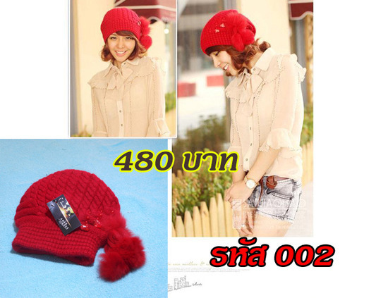 ขายหมวกไหมพรม สีแดงสวยๆ พร้อมส่ง