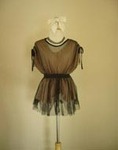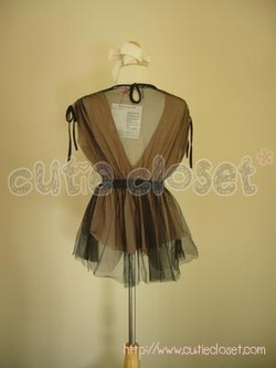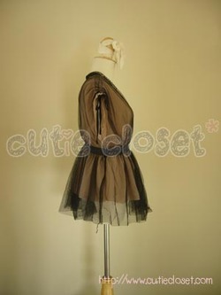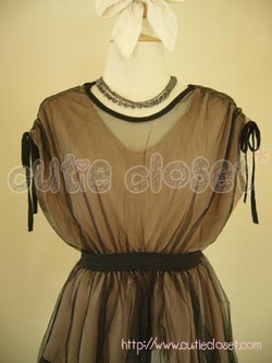 เสื้อคุณหนูผ้าจับจีบคลุมด้วยผ้ามุ้งสีนู้ด-ดำ