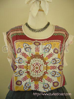 นาทีนี้ไม่มีอะไรอินไปกว่าเสื้อปริ้นท์ลายแนวโบสถ์ค่ะ ตัวนี้เป็นเสื้อผ้าซาติน แพทเทิร์นอาจจะดูเรียบๆ แต่ใส่ขึ้นมาแล้วน่ารักค่ะ ด้านหลังเป็นผ้าเรียบๆ นะคะ ไม่บางมากค่ะ ใส่สบาย จะแมทช์กับกางเกงเอวสูงหรือกระโปรงแบบในรูปก็สวยค่ะ อก ยืดได้ถึง 44" ยาว 25" http://www.cutiecloset.com/Products/productdetails.asp?category_id=1&product_id=200812243