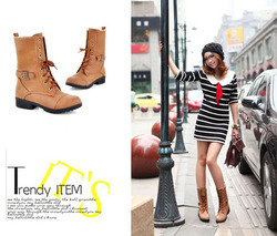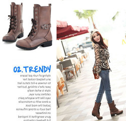 รองเท้าบู๊ทแฟชั่นเกาหลี แบบหนัง นำเข้า มี3สี - พรีออเดอร์HU5107