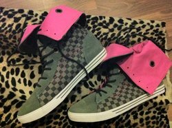 ขายรองเท้า vans หุ้มข้อยาว ลายตาราง ข้างนอกสีเทาดำ ข้างในสีชมพู เชือกสีดำ ไซด์ 8 ของแท้้ ซื้อมาจากใน shop อเมริกา ราคาต่อรองกันได้ สนใจติดต่อเข้ามาขอดูรูปเพิ่มเติมได้ค่ะ
