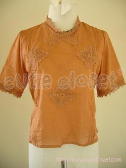 เสื้อผ้าฝ้ายตกแต่งลูกไม้สีชาเย็น style LANDMEE