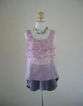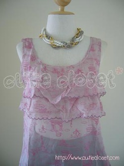 น่ารักแบบคุณหนูๆ กับเสื้อกล้ามผ้าชีฟองสีชมพูปริ้นท์ลาย ตัวนี้แพทเทิร์นสไตล์แบรนด์ดัง เก๋ๆ เพราะด้านหน้ามีระบายและปลายเสื้อเป็นหยักๆ กุ๊นขอบ ด้านหลังน่ารักมากๆ ค่ะ จะใส่ปล่อย หรือใส่กับกางเกงเอวสูงก็สวยกว่าใคร ได้ลุคหวานมากๆ เลยค่ะ เสื้อสวยๆ แบบนี้ พลาดไม่ได้นะคะ อก ยืดได้ถึง 34" ยาว 23" http://www.cutiecloset.com/Products/productdetails.asp?category_id=1&product_id=200811566