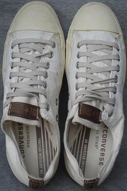 Convrse Premiere ผ้าใบขาวทั้งคู่พื้นน้ำตาลเบอร์ 45