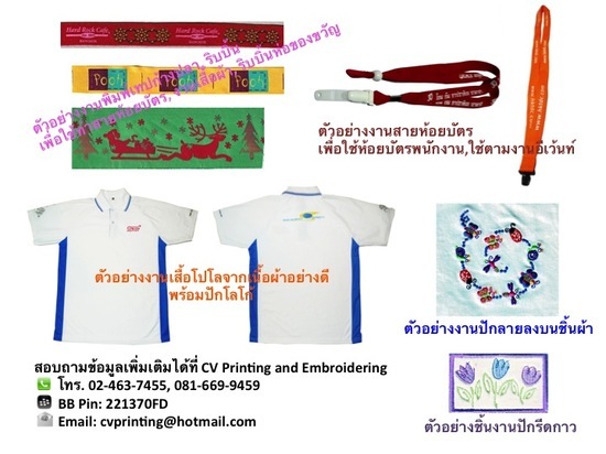 รับสกรีนงาน เทปทอ ริบบิ้น ผลิตสายห้อยบัตร ผลิตเสื้อโปโล และ รับทำงานปักทุกชนิดครับ