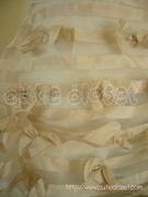 กระโปรงผ้าไหมชีฟองตกแต่งดอกไม้สีครีมสไตล์ Vickteerut