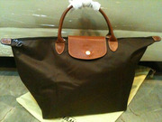 Longchamp Le pliage สี Chocolate รุ่นหูสั้น ฝาเเละหูกระเป๋าหนังเเท้ โลโก้ หัวซิป เป็นสีเงินรมควัน กระดุมเป็นสีทองค่ะ เนื้อผ้าของกระเป๋าหนา ลื่น size กว้าง 12" สูง 11" ฐาน 8" หูยาว 12"