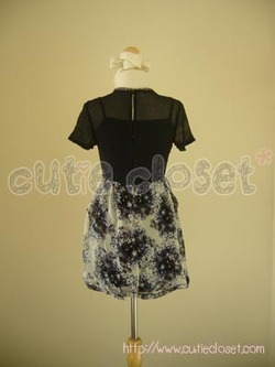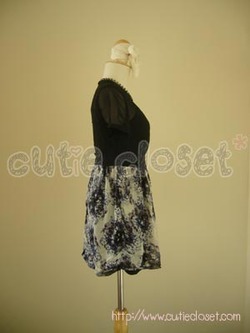 ชุดเดรสคุณหนูผ้าชีฟองตัดต่อสีดำ