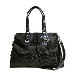 Coach 15510 Ashley Signature Sateen Carryall กระเป๋าสีดำ ขนาด 15" ความยาว 10" และความกว้าง 4.25" (D) กระเป๋าสะพายขนาดใหญ่มีช่องเก็บของ 3 ช่อง เปิด-ปิดด้วย magnet 2 ช่อง อีกช่องเป็นซิปอยู่ช่องกลาง สามารถใช้งานได้ 2 แบบคือ ถือคล้องมือ และสะพาย สายสะพายสามารถถอดออกได้