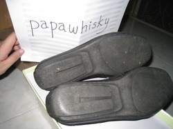 รองเท้าCrazy Step สีดำ กำมะหยี่ ข้างในมีเล่นลายสก๊อต size 10 US พื้นด้านในที่เห็นไม่ได้ขาดนะครับ มันลอกเนื่องจากใสารองพื้นแล้วดึงออก กาวมันเลยติด